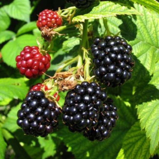 Ежевика бесшипная Чероки сорт американской селекции раннего срока созревания. Ягода крупная, со средним весом 5г, на вкус сладкая. Плоды хорошего качества, транспортабельны. Содержание сухих веществ 9,7%. Куст мощный, облиственный, пряморастущий, подходит для более плотных схем посадки. Побеги бесшипные, высотой до 1,5м.
