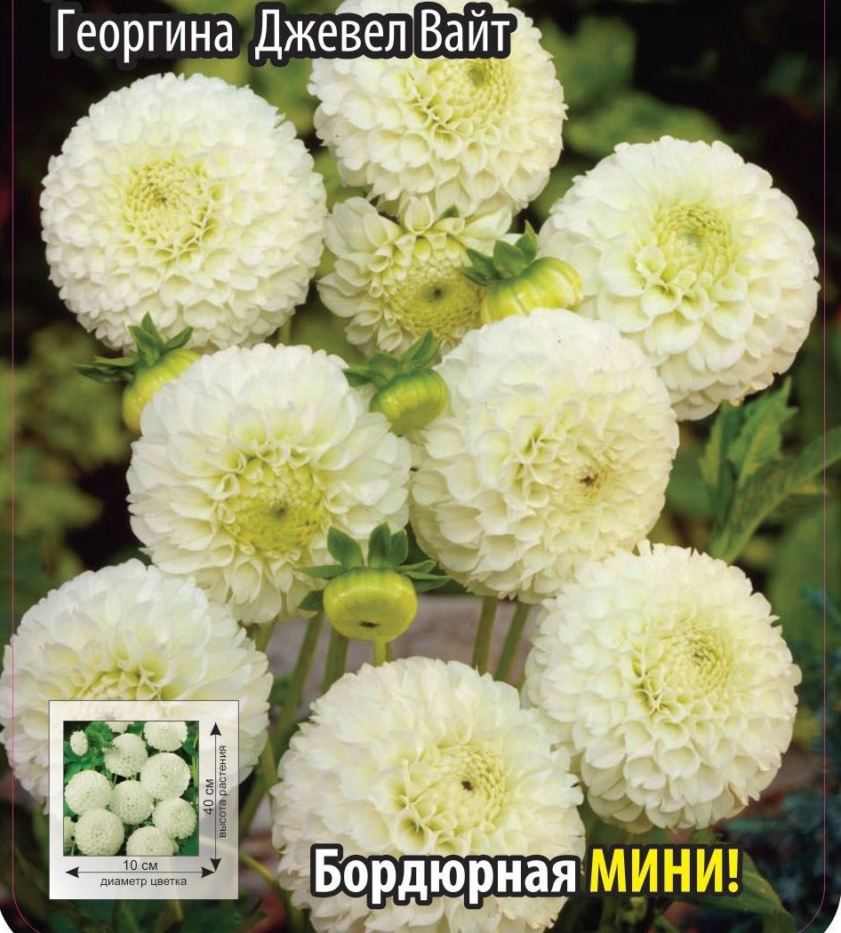 Георгина Джевел Уайт высота 40 см диаметр цветка 10 см