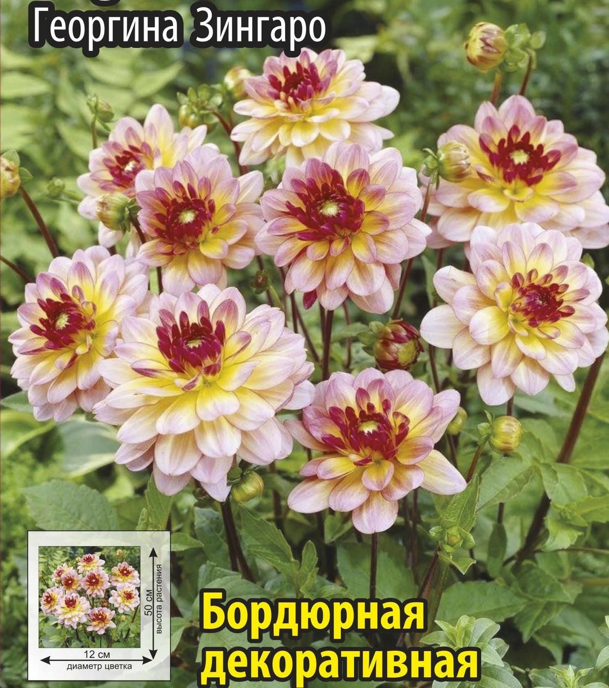 Георгина Зингаро нежно-розовый с жёлтым центром, Н-50см, О-10см
