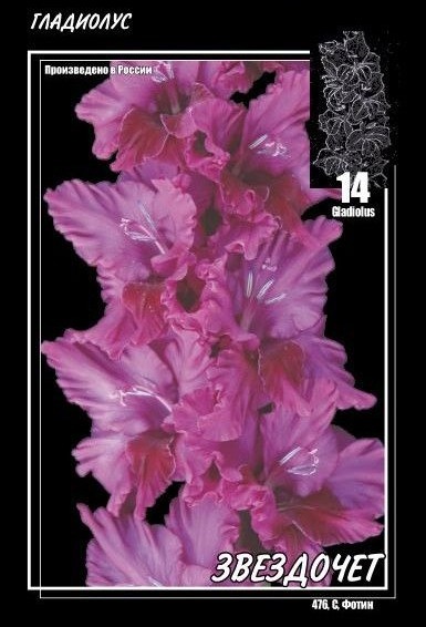 Гладиолус Звездочет Гладиолус Звездочет Новый сорт. Неоновая окраска лиловых с малиновым пятном, крупных гофрированных цветков. Высокий мощный колос.