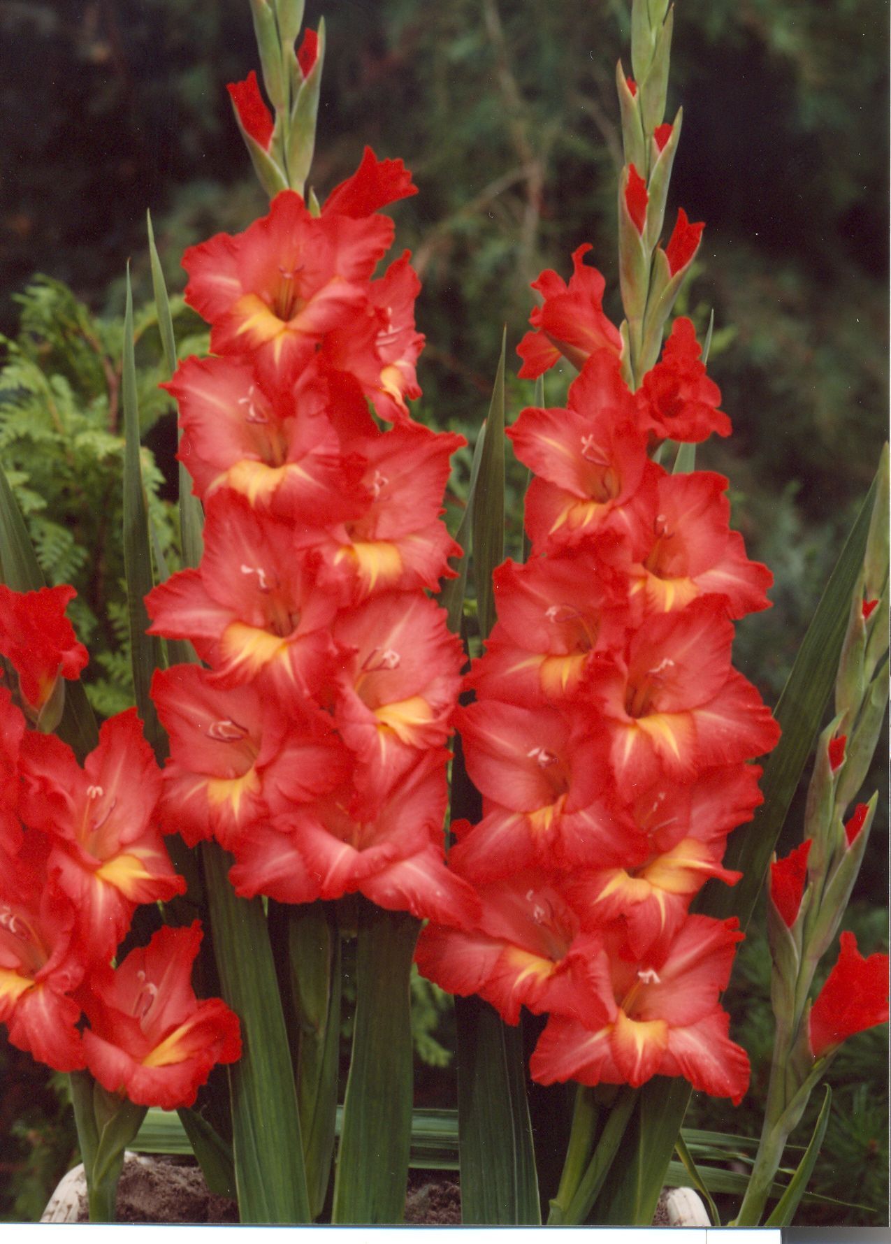 Гладиолус Никита высота растения 80-110см, красный с желтым пятном.