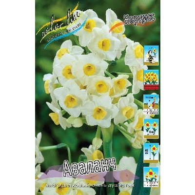 тацеттовидный образует шапку из 10-20 мелких нарциссиков (17 сестер) околоцветник белый, коронка желтая