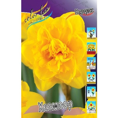 раннецветущий махровый сорт, очень сильные стебли, устойчивая окраска и длительный период цветения, равномерно ярко-желтый
