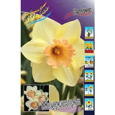(крупнокор.) Модуляция-это два красивых нарцисса в одном. Его околоцветник ванильно-светло-желтого цвета, коронка нежно персикового цвтеа. Но очень быстро, персик исчезает и сменяется ярким сливочно-белым.