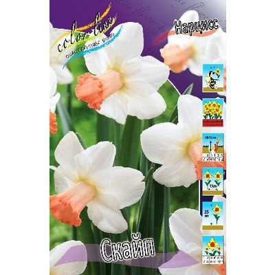(трубч.) Новинка! Околоцветник белый, коронка лососево-розовая, более интенсивная с краю, гофрир.