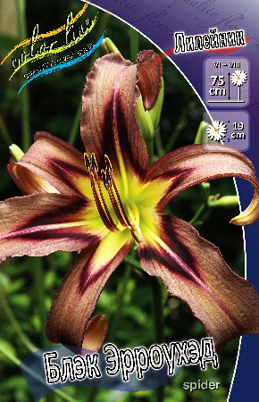 СПАЙДЕР бронзовый с жёлтым горлом, тёмно-лиловым пятном в виде звезды и тёмно-лиловым кантом / Расцветает к вечеру / Н 75см, Ø 19см, цветение: 7-8