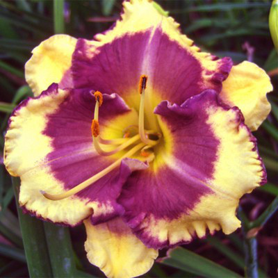 и узенькой фиолетовой окантовкой по краям гофрированных лепестков. Повторноцветущий. Прекрасное дополнение в вашем