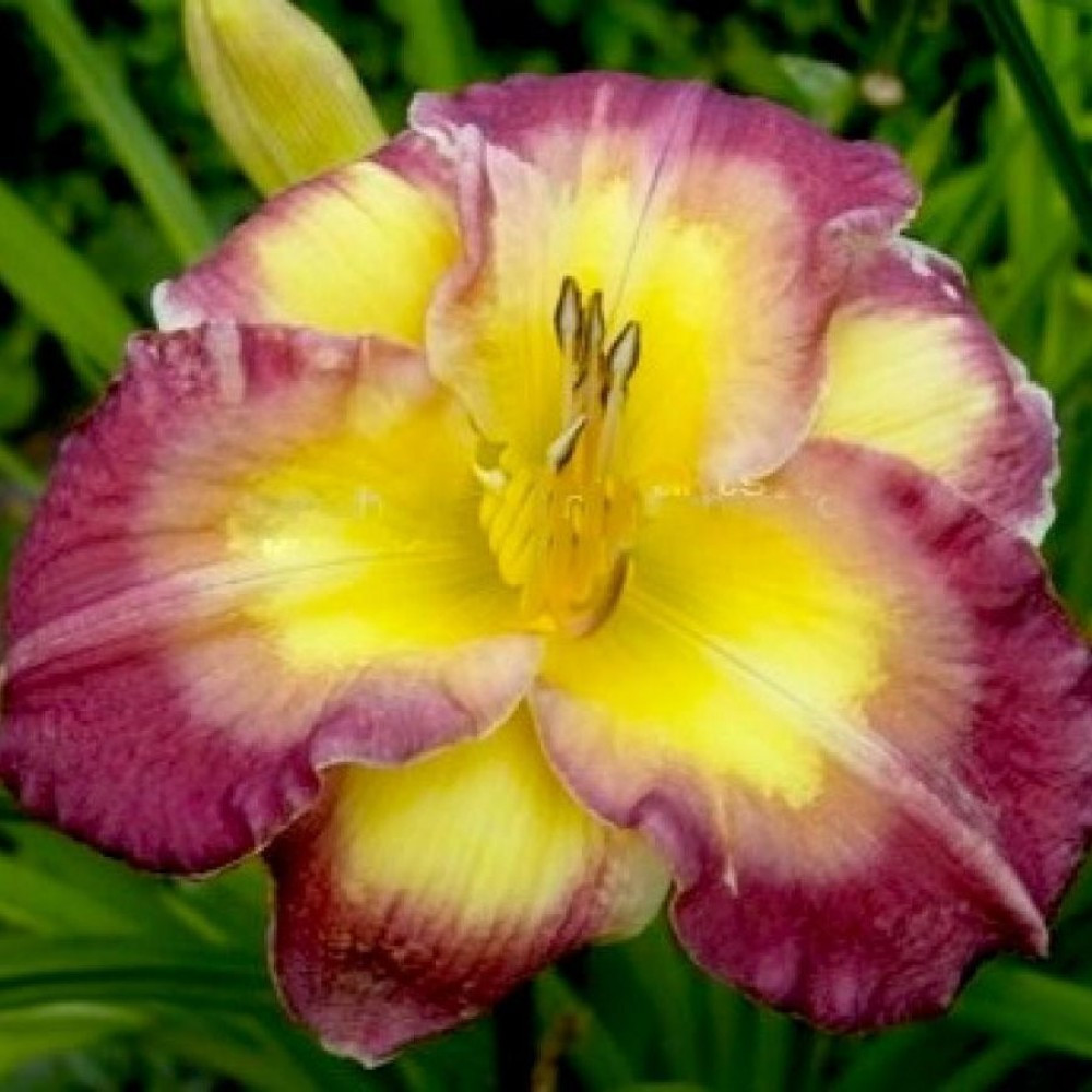 восково-желтый в центре, затем бледная палево-розовая полоса, край лепестка винно-лиловый / Н 70см, Ø 13см, цветение: 7-8
