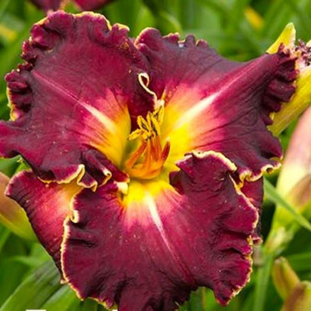 ГОФРИР. Бордовый с желтым пятном и желтым кантом / Цветет больше 16 часов / Н 60см, Ø 14см, цветение: 7-8,9