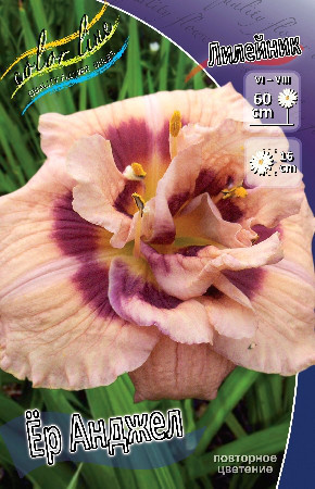 МАХРОВЫЙ, лососевый с лиловым кольцом и желтым центром / Н 60см, Ø 16см, цветение: 6-7,9