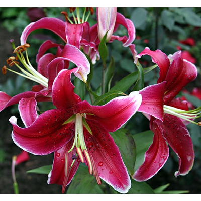 Лилия Кисспруф относится к виду Восточных гибридов. Цветки диаметром 20 см, пурпурный, глянцевый, белая кайма, тычинки оранжевые, темный крап. Зацветает в июне-июле. Имеет сильный аромат. Высота растения 100 см. Время посадки осенью - август-сентябрь или весной - в мае. Глубина посадки - 15-20 см. Расстояние между луковицами - 25-35 см. Расположение для посадки - открытые и затенённые места. Растение требует укрытия в первый год. Предпочитает нейтральную или слабокислую хорошо дренированную почву. Лилия Кисспруф устойчива к грибным заболеваниям, зимостойкая. Размножается луковичками - детками и луковичными чешуйками.