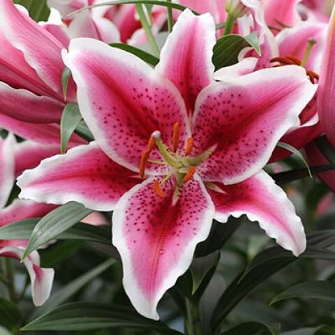 Лилия восточная Стар Романс цвет темно-розовый с красным крапом и белой каймой