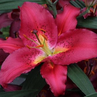 Лилия Тессала относится к виду Восточных гибридов. Цветки диаметром 22 см, темно-малиновый, глянцевый с желтой сердцевинкой и редким темным крапом. Зацветает в июле-августе. Имеет приятный аромат. Высота растения 120 см. Время посадки осенью - август-сентябрь или весной - в мае. Глубина посадки - 15-20 см. Расстояние между луковицами - 25-35 см. Расположение для посадки - открытые и затенённые места. Растение требует укрытия в первый год. Предпочитает нейтральную или слабокислую хорошо дренированную почву. Лилия Тессала устойчива к грибным заболеваниям, зимостойкая. Размножается луковичками - детками и луковичными чешуйками.