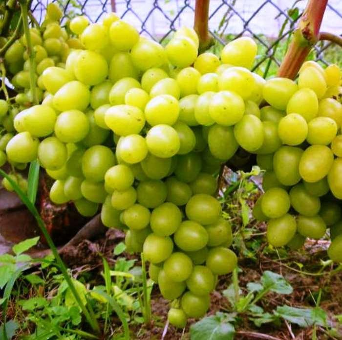 Виноград Аркадия Очень ранний 115-125 дн. Морозостойкость до -21С. Гроздь крупная, 500-700 г (лучшие до 2 кг). Ягоды крупные и очень крупные,- 28x23 мм (и более), до 15 г, в зависимости от нагрузки куста и агротехники, яйцевидной (сердцевидной) формы, белые. Вкус хороший легкий, сладкий. При полном созревании — возможен легкий мускатный аромат. Мякоть мясисто-сочная, кожица прочная, но не толстая - транспортабельность высокая. Побеги вызревают хорошо. Урожайность ежегодная, высокая.