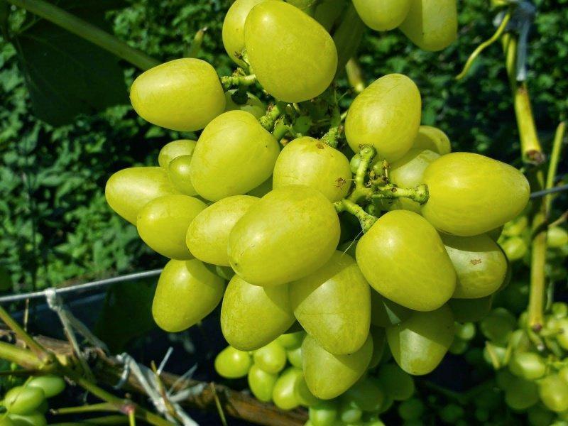 Описание сорта: Сверхранний срок созревания - 110-115 дней, съем в конце июля - начале августа. Ягоды очень крупные — 12-14 г, овальные, золотисто-зеленоватая. Шкурка плотная, в меру толстая, легко съедаемая. Мякоть сочная, похрустывающая. Вкус гармоничный, раскрывающийся с цитрусовыми, мускатными и медовыми нотками в послевкусии. Гроздь очень крупная, достигает даже 2 кг, цилиндро-конусообразная, плотная, иногда крылатая. Сорт столовый. Сорт устойчив к милдью, оидиуму и серой гнили. Товарность и транспортабельность хорошие. Морозостойкость -25°С. Лозы вызревают рано и очень хорошо.