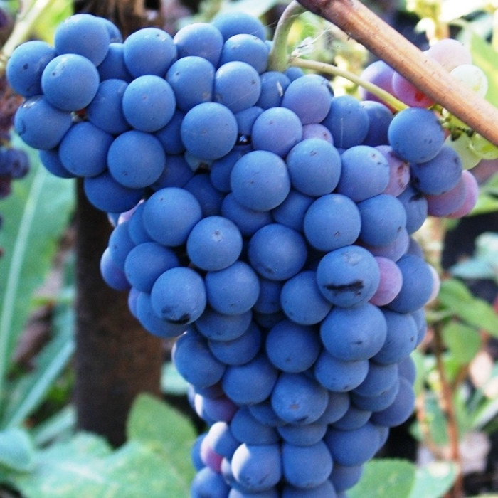 Описание сорта: Плоды. Форма грозди округлая, плотность средняя. Ягоды округло-овальной формы, крупные и очень крупные, темно-синие или почти черные, размером 26х22 мм, массой 6-9 г. Вкус хороший, гармоничный, нежный. Сахаристость 16-18 %. Ранний срок созревания (107-120 дней). Полной спелости достигает в первой-второй декадах августа. Урожайность высокая. Нагрузку выдерживает хорошо. Может висеть на кустах до морозов без существенных изменений вкусовых характеристик. Сорт устойчивый к милдью. Морозостойкость сорта -23 °С. Кусты. Сила роса кустов средняя или выше средней. Вызревание лозы хорошее.