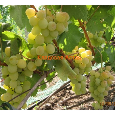 Озон (Талисман х К-81). Селекция Россия. Ранний- 110-120 дней. Очень сильнорослый. Цветок обоеполый. Грозди цилиндроконической формы, средней плотности, весом 600-800 (до 1 кг), без горошения. Ягоды белые, янтарные, овальной формы, весом 10-15 грамм, очень приятного насыщенного мускатного вкуса, хорошо сохраняются на кустах после созревания. Мякоть мясистая, кожица при еде не заметна. Сахаронакопление очень высокое. Вызревание побегов очень хорошее. Обрезка на плодоношение на 6-8 глазков. Морозоустойчивость -23°С. Устойчивость к основным болезням хорошая.