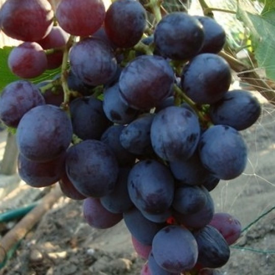 Виноград Памяти Лазаревского Столовый сорт винограда. Срок созревания ранний, 115–120 дней. Кусты большой силы роста. Грозди цилиндро–конические, очень крупные 800-1000 г, отдельные до 2,0 кг, плотные. Ягоды красные, крупные, 8-9 г, 27,1 22,2 мм, овальные. Мякоть мясисто-сочная. Вкус гармоничный, с мускатом. Дегустационная оценка свежего винограда 8,4 балла. Вызревание побегов среднее. Процент плодоносных побегов 50-65 %. Коэффициент плодоношения 1,0–1,2. Нагрузка –40-50 побегов на куст, обрезка лоз на 10-12 глазков. Морозостойкость сорта до –21 °С. Транспортабельность высокая.