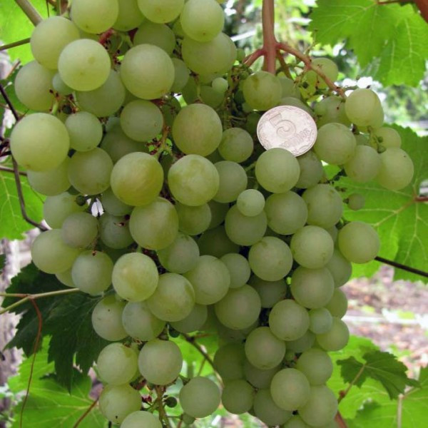 Сверхранний срок созревания 100-105 дней, съем в конце июля Плоды средней величины, 4-5 гр., округлые, светло-зеленой окраски, при вызревании приобретают золотистый или розоватый оттенок. Кожица тонкая, легко отделяющаяся от мякоти.вкус мягкий, сбалансированный, сопровождается мускатным ароматом. Гроздь среднего размера, 500 граммов. Сорт столовый, самоплодный, отличается высокими вкусовыми качествами. Радует морозостойкость сорта - 25-30°С. Лоза. Вызревание очень хорошее, лозы твердые, устойчивые к погодным условиям.